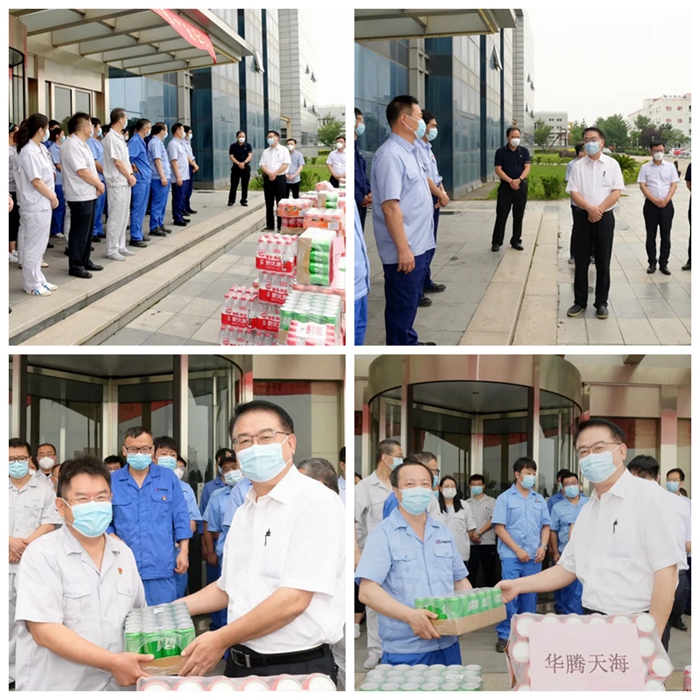 7月6日上午,陳宇一行來(lái)到集團(tuán)大興化工園區(qū),慰問(wèn)園區(qū)內(nèi)華騰化工、華騰天海、試劑所、化工廠(chǎng)4家企業(yè)的干部職工。陳宇對(duì)一線(xiàn)職工冒酷暑、戰(zhàn)高溫,認(rèn)真負(fù)責(zé)的工作態(tài)度給予了高度肯定,對(duì)4家企業(yè)疫情防控、防汛、防暑降溫措施落實(shí)情況進(jìn)行了督促和檢查。
