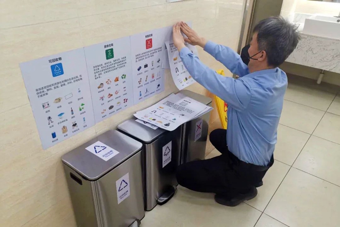 公司在持續開展宣傳的同時,不斷更新垃圾分類設備設施,優化桶站環境,及時更換已損壞的垃圾桶,確保桶站無異味,定期檢查桶站情況,做到無冒滿、無撒漏。公司還針對垃圾投放量較大的點位,及時增加分類垃圾桶,并在周邊加裝監控設備,做好垃圾分類技防工作。
