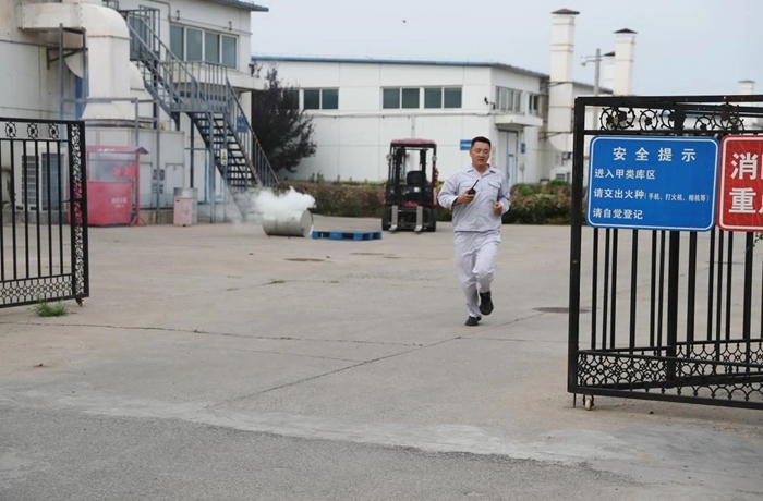 為進(jìn)一步筑牢安全生產(chǎn)防線,壓緊壓實(shí)安全生產(chǎn)責(zé)任, 6月底,華騰化工組織開展了2024年危險(xiǎn)化學(xué)品火災(zāi)事故應(yīng)急演練。此次演練模擬場景為危險(xiǎn)化學(xué)品庫房入庫作業(yè)時(shí)發(fā)生丙酮泄露著火,開展了火災(zāi)上報(bào)與先期處置、人員疏散逃生、微型消防站和消防救援隊(duì)滅火等環(huán)節(jié)的演練科目。