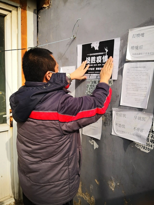 同時(shí),北搪公司派專人多次到現(xiàn)場進(jìn)行疫情防控安全檢查,張貼宣傳海報(bào)和疫情防控通知,與村委會(huì)人員一起,為村民辦理出入證,進(jìn)行挨家挨戶走訪,深入了解住戶情況、宣傳疫情防控知識(shí)、告知各級疫情防控要求,教育和引導(dǎo)宿舍區(qū)職工做好疫情防控。