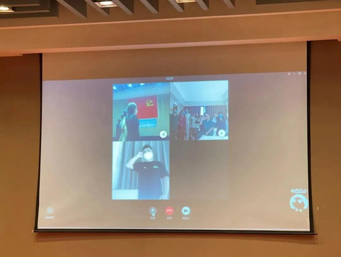 距嘉賓樓不遠的另一座樓內(nèi),一部分同樣表情肅穆、胸戴黨徽、身穿防護服的同志們同一時間舉起右手,莊嚴宣誓。