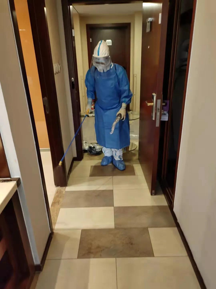 酒店負責(zé)人白江自隔離觀察人員入住酒店那一刻開始,便堅守在崗位上,吃住在酒店,24小時在崗,直至最后一位集中隔離觀察人員離開,酒店完成消殺后,他才拖著疲憊的身軀回到家中。現(xiàn)場工作人員安全平安、零感染,此次隔離觀察任務(wù)圓滿完成。
