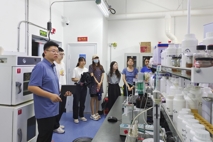 隨后,在總工程師崔正的帶領下,師生參觀了華騰新材辦公場所、產品陳列、實驗室等,促進了學生們對理論知識與生產應用相結合的感知,也對實驗室安全管理有了更加直觀的認識。