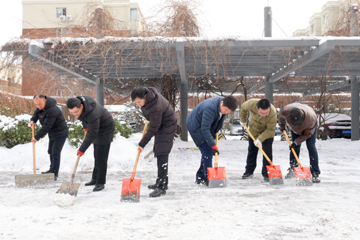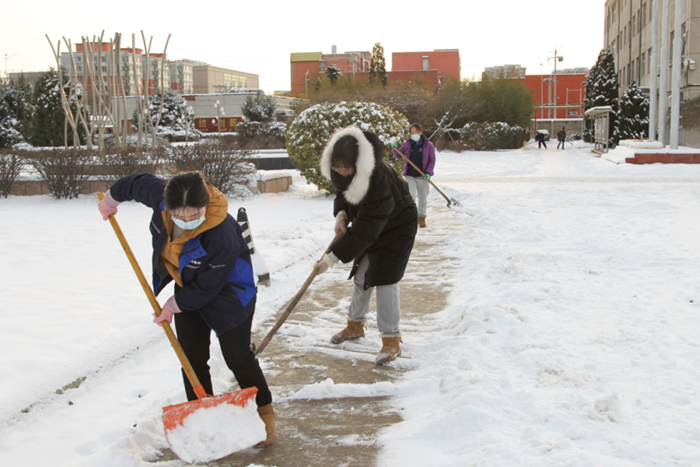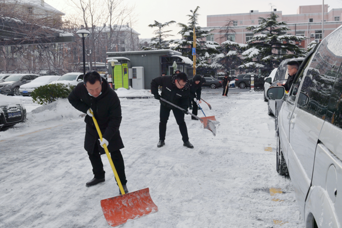 剛到單位的干部職工,紛紛拿起掃帚、鐵鍬,加入到掃雪除冰大“會(huì)戰(zhàn)”的隊(duì)伍中。大家齊心協(xié)力、現(xiàn)場(chǎng)一片熱火朝天,干凈整潔的道路很快清掃出來,保證了干部職工出行安全。