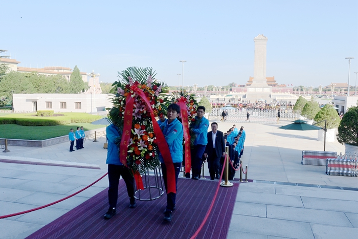 10月11日,北京化工集團(tuán)黨委書(shū)記、董事長(zhǎng)陳宇帶隊(duì)來(lái)到毛主席紀(jì)念堂,看望慰問(wèn)參加志愿服務(wù)的北化青年志愿者。