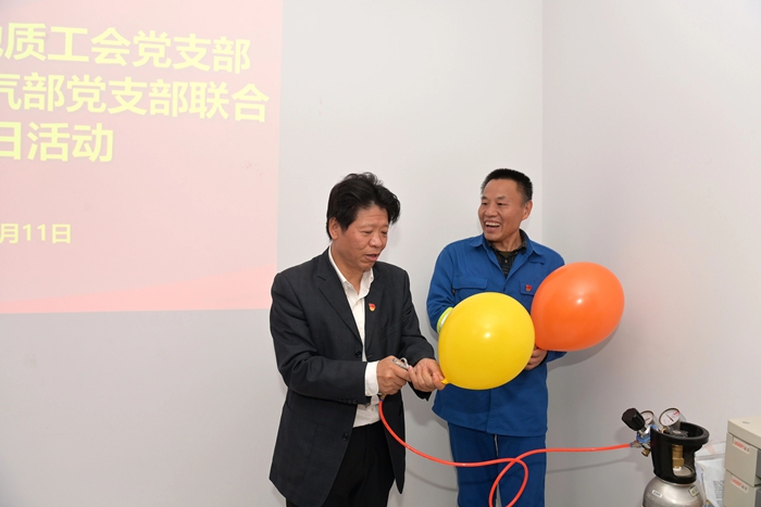 在交流中,北普公司包裝氣部黨支部書記王紹武介紹了工廠生產(chǎn)運(yùn)行情況,并重點(diǎn)匯報(bào)了包裝氣黨支部全體黨員為高質(zhì)量完成此次服務(wù)保障任務(wù),及時(shí)成立臨時(shí)黨支部,強(qiáng)化黨建引領(lǐng),發(fā)揮戰(zhàn)斗堡壘作用;黨員同志們從生產(chǎn)、運(yùn)輸、現(xiàn)場操作,到落實(shí)安全流程、人員培訓(xùn),始終發(fā)揮先鋒模范作用,以硬核擔(dān)當(dāng)帶領(lǐng)一線骨干,把好操作關(guān)、守好安全線,最終圓滿完成保障任務(wù)的感人經(jīng)歷。中國能源化學(xué)地質(zhì)工會(huì)黨支部的黨員同志們還在現(xiàn)場人員指導(dǎo)下,親手進(jìn)行氣球充裝,親身感受重大活動(dòng)服務(wù)保障中的緊張氛圍。