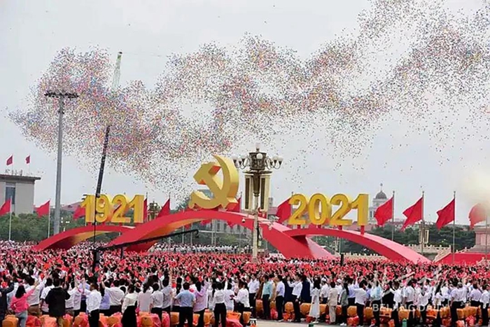 7月1日,慶祝中國共產(chǎn)黨成立100周年大會在北京天安門廣場隆重舉行。當(dāng)人們?nèi)孕某迸炫取o比激動地沉浸在總書記重要講話中時,伴隨著天安門廣場7萬多人的歌聲、歡呼聲,10萬只氣球騰空而起,天安門廣場上空剎那間彩球飛舞、彩練當(dāng)空,瞬間將慶祝中國共產(chǎn)黨成立100周年大會推向又一個高潮。