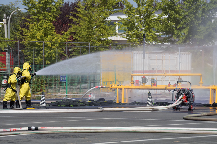 警笛鳴響、水龍騰空。在中秋、國慶 “雙節(jié)”到來之際,9月28日上午,北京化工集團華騰科技園區(qū)(原大興化工園區(qū))被緊張而嚴(yán)肅的氛圍所縈繞。由北京市應(yīng)急管理局、北京市消防救援總隊、北京市大興區(qū)人民政府和北京化工集團主辦,大興區(qū)應(yīng)急管理局、大興區(qū)安定鎮(zhèn)人民政府、華騰化工和北科院城安所承辦的北京市危險化學(xué)品倉庫火災(zāi)事故綜合應(yīng)急處置演練正在這里舉行,150余人參加演練。