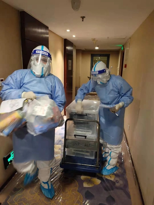在長達(dá)23天的隔離服務(wù)保障中,他們遠(yuǎn)離家人,日夜堅(jiān)守在隔離區(qū)。要知道,他們服務(wù)的隔離人員只要有一人被確診,他們就是密切接觸者,要承擔(dān)被傳染的風(fēng)險(xiǎn),同時(shí)還要接受更嚴(yán)格的檢查和管控,但是,當(dāng)組織選擇了他們,他們無條件地走向“戰(zhàn)場”。
