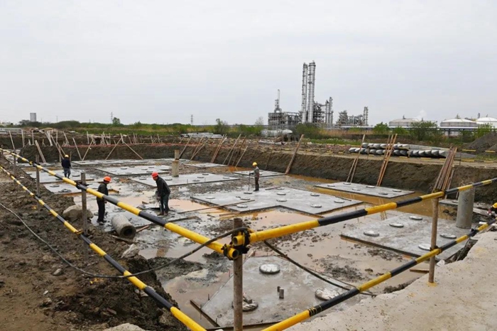自3月18日,北京化工集團PAE項目聚合主裝置建設施工正式啟動以來,至4月15日,聚合主體工程裝置已經完成樁基施工,在此進度基礎上,單體精餾及溶劑回收和熱媒站也已完成土方開挖,現已進入基礎承臺的模版安裝作業??刂剖液途C合樓已完成工程樁施工、土方開挖和墊層澆筑;輔助用房、管廊和廢氣廢液處理系統正在進行工程樁施工。上述施工進度標志著PAE項目土建工程已經全面展開。