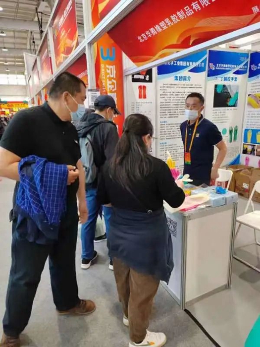 在此期間,北京市政府副秘書長劉印春,市國資委黨委書記、主任曾勁,黨委副書記、副主任,一級巡視員晉秋紅,在北京化工集團黨委副書記、總經理陳宇,副總經理張榮寰陪同下走進華騰橡塑展位參觀指導。大家饒有興趣地拿起展位上的乳膠手套,仔細詢問手套的用途和特性。在參觀中,曾勁對北京化工集團聚焦戰略首務,推進“3+1”業務,服務首都,服務民生的舉措給予充分肯定,并預祝北京化工集團在這一消費季活動中取得成功。華騰橡塑此次直賣的產品,廣受歡迎。